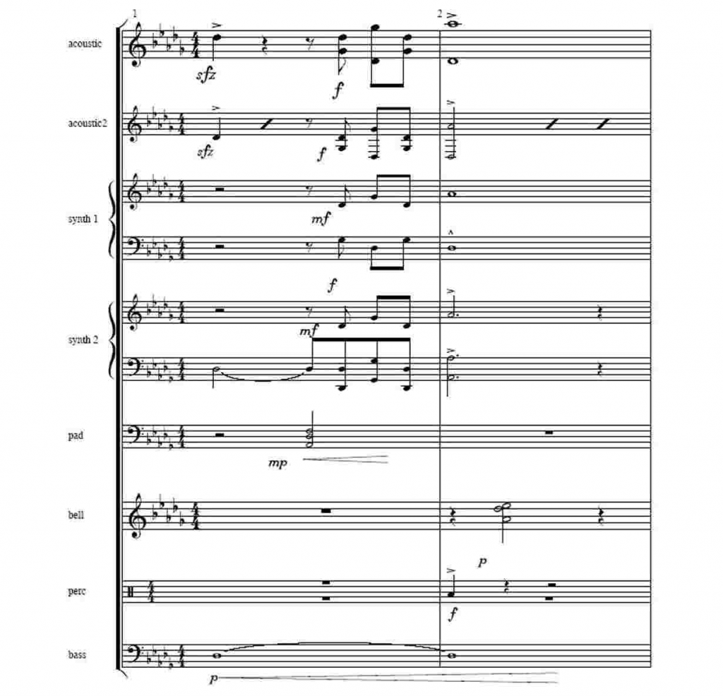 The self-assured, well-grounded tonality of the sound logo thereby created emphasizes the innovative strength and dynamics of the BMW brand, thereby establishing a general automobile context. In this acoustic design, sounds played forwards and backwards are used symbolically as elements of flexible mobility. The tonality is both self-assured and firmly grounded; an extravagant tonal style conveys the joy of progress, technology and pleasure-oriented driving; the following is a graphic reproduction (shown in sheet music form) of the BMW sound logo.